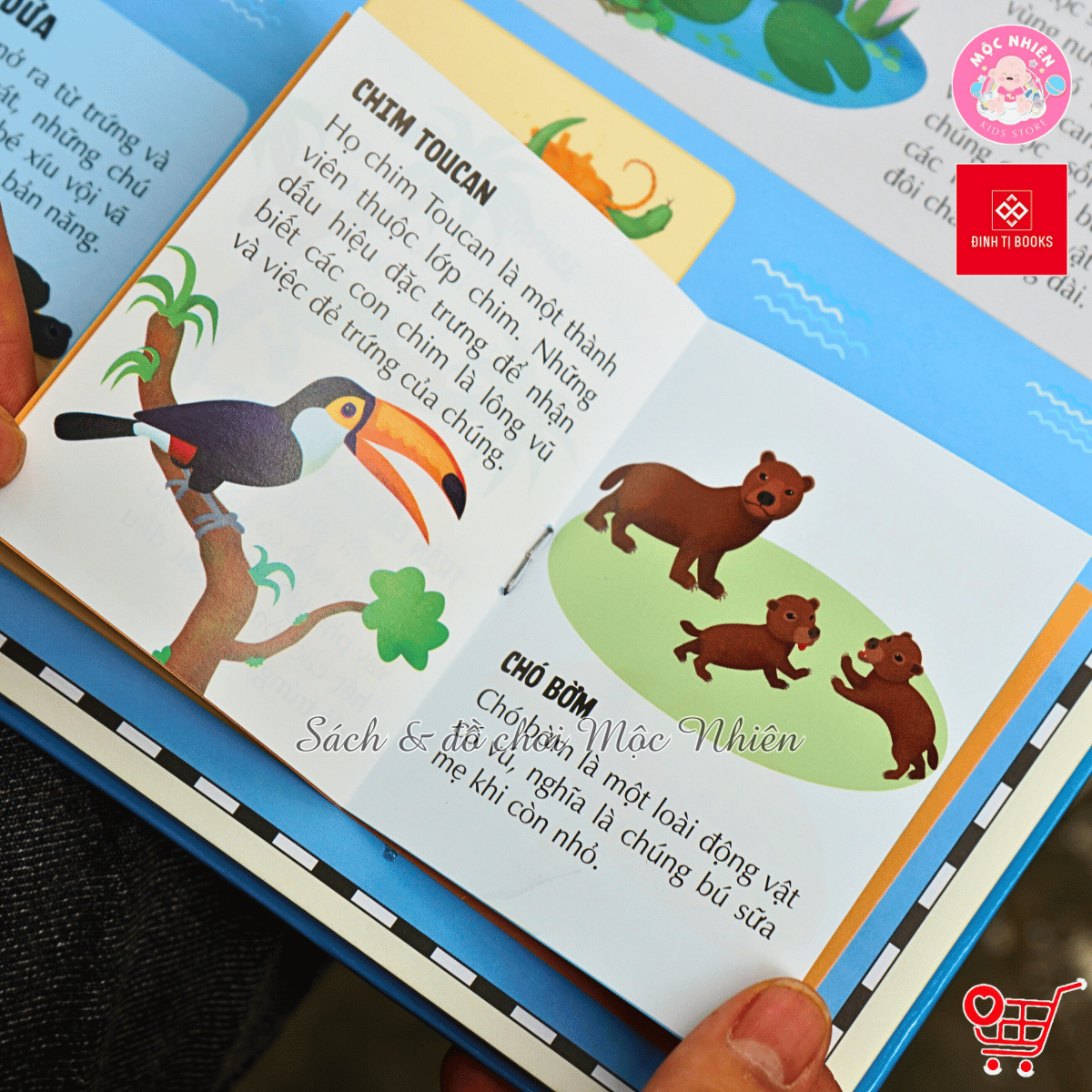 Đặc biệt với thiết kế độc đáo “sách trong sách”, sẽ có hàng trăm box thông tin thú vị cùng các cuốn sách nhỏ đính kèm xinh xắn để các bạn nhỏ tìm hiểu kỹ hơn về nơi sống, thức ăn, tập tính của hàng trăm loài động vật. Từ đó bồi dưỡng ý thức bảo tồn và tình yêu thiên nhiên cho các thế hệ tương lai.