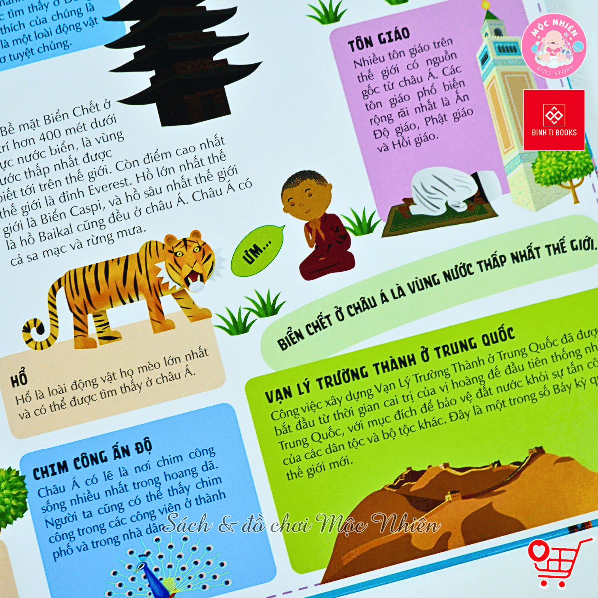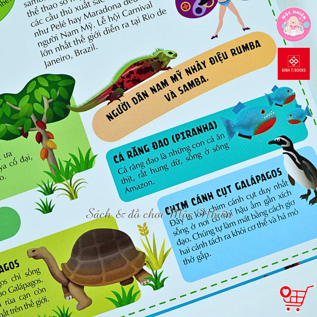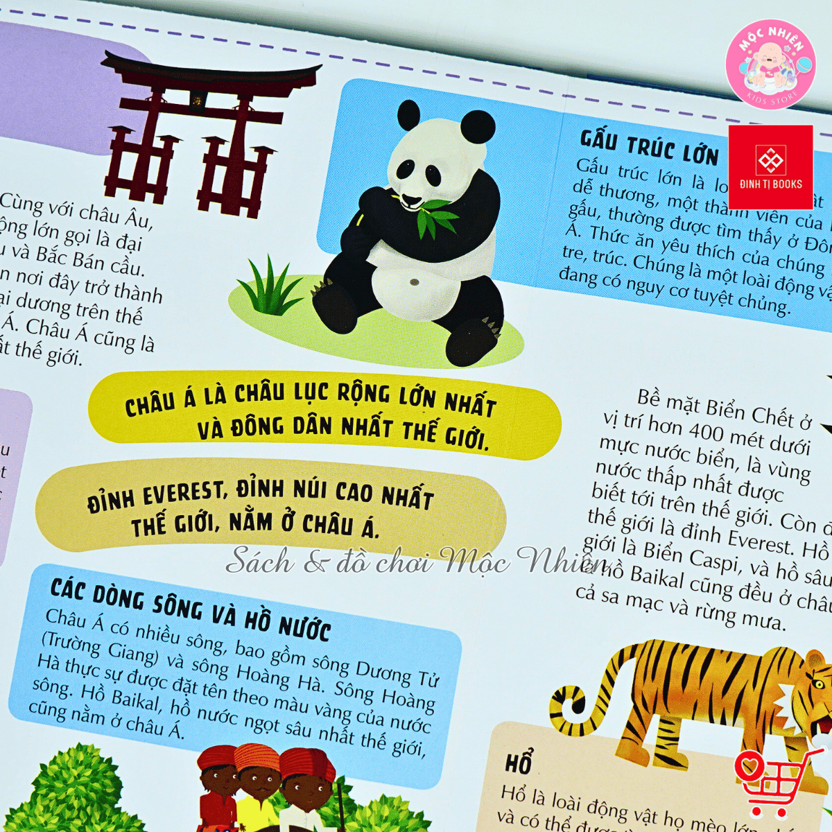 Các kiến thức hữu ích về địa lý, văn hóa, tự nhiên…của các châu lục được trình bày logic kết hợp hình minh họa phong phú giúp trẻ dễ dàng đọc hiểu, ghi nhớ thông tin, dễ liên tưởng thực tế.