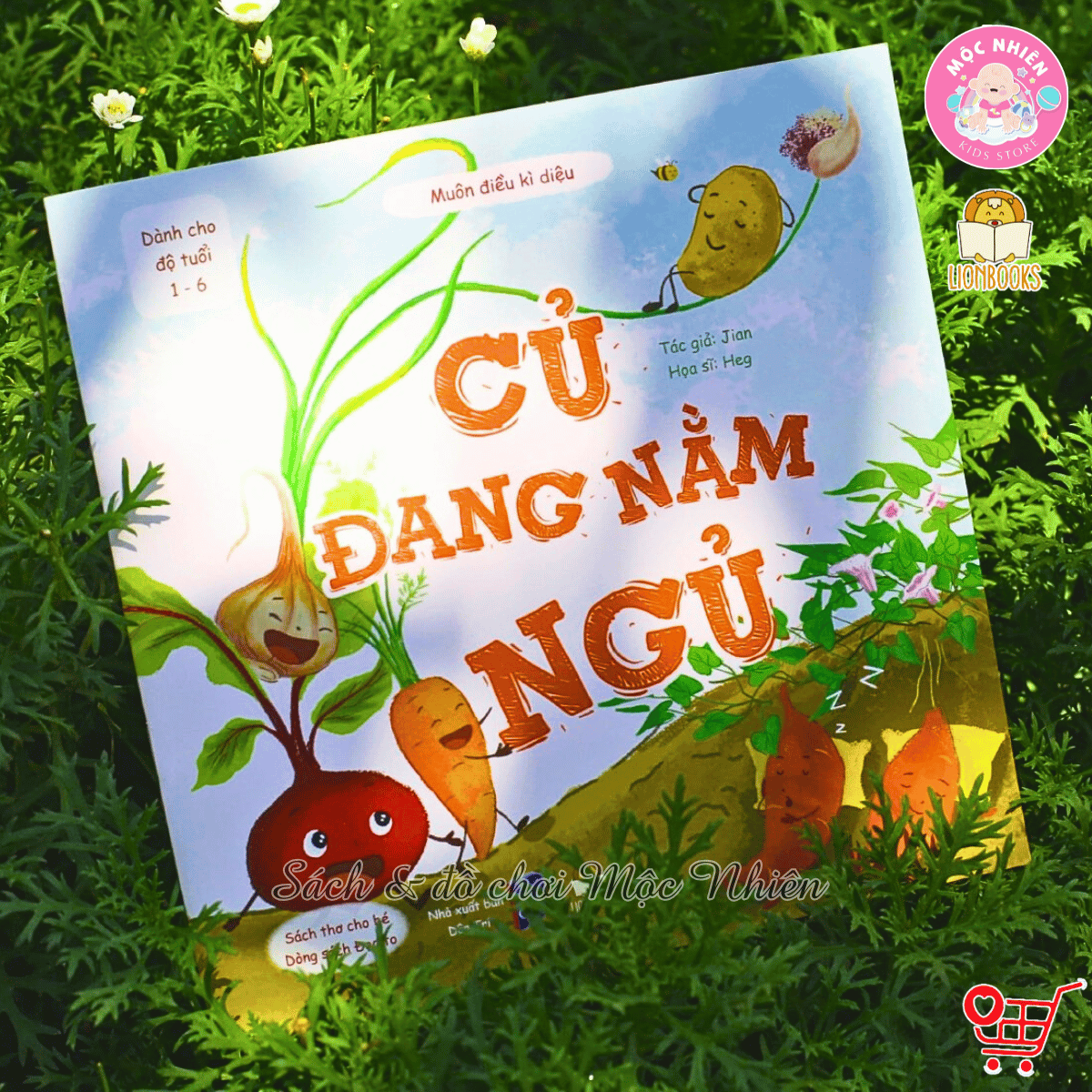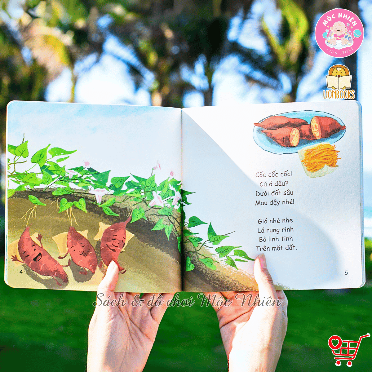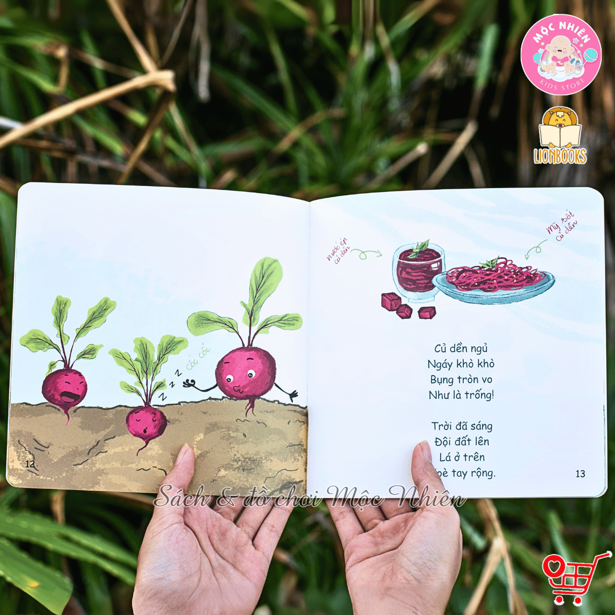 Ở cuốn “Củ đang nằm ngủ”, các bạn nhỏ sẽ được làm quen với các loại củ mọc trồi lên từ dưới đất cực kì đáng yêu đấy!