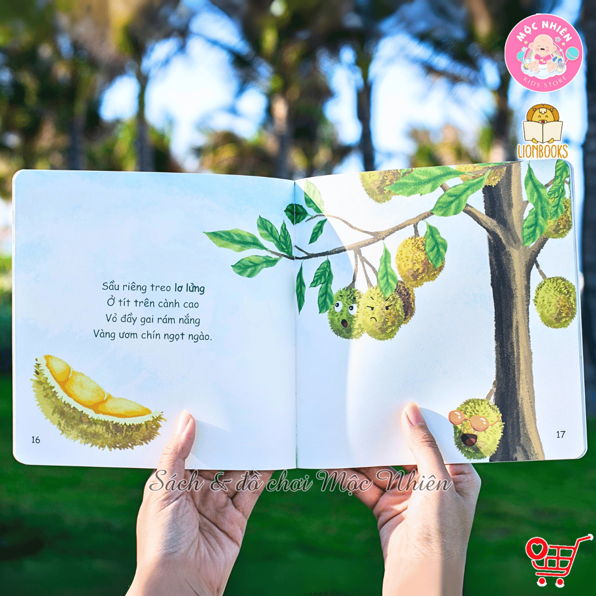 Ở cuốn “Lúc lỉu trên cành”, chúng mình giới thiệu đến các bạn nhỏ các loại quả mọc theo chùm: quả bơ, quả mận,...