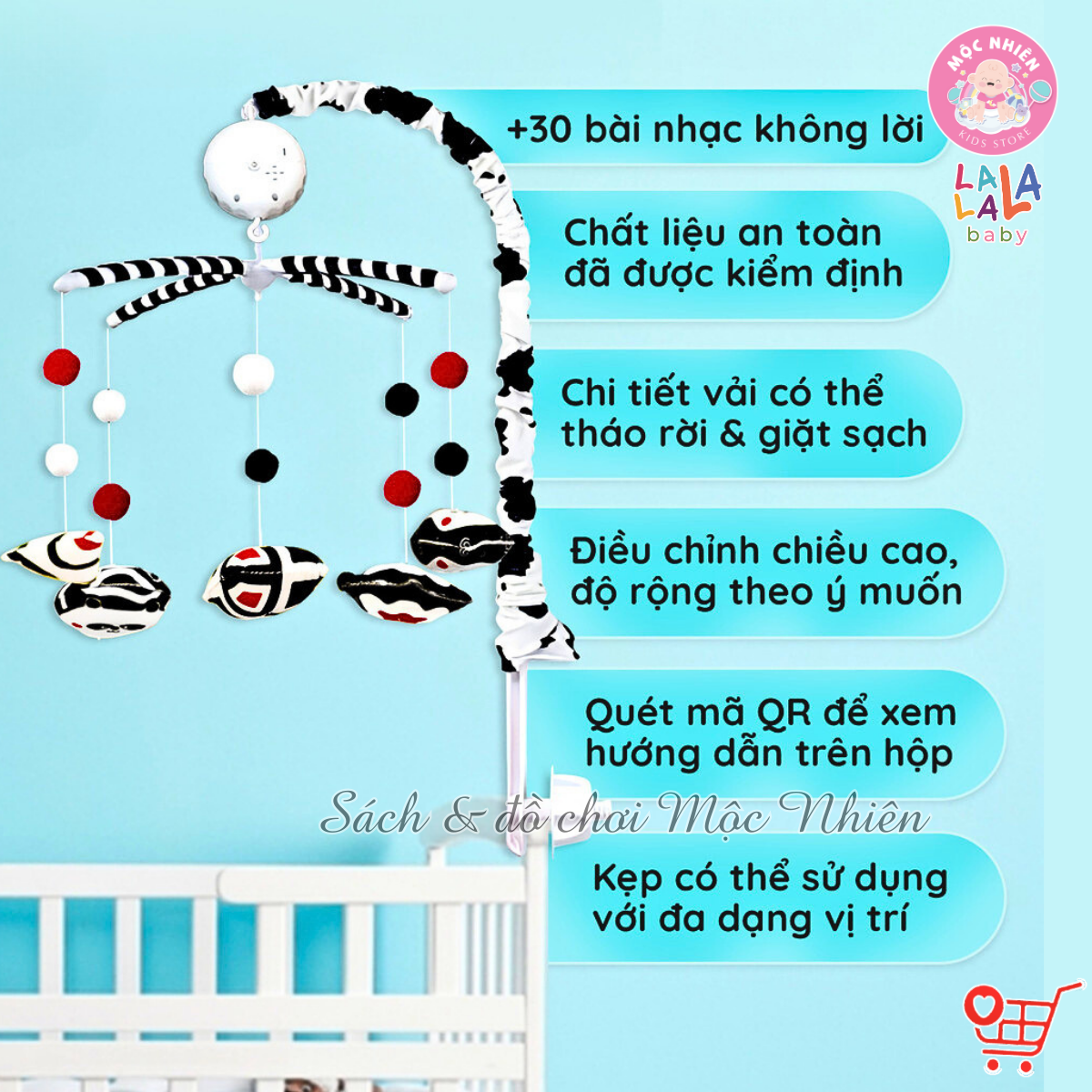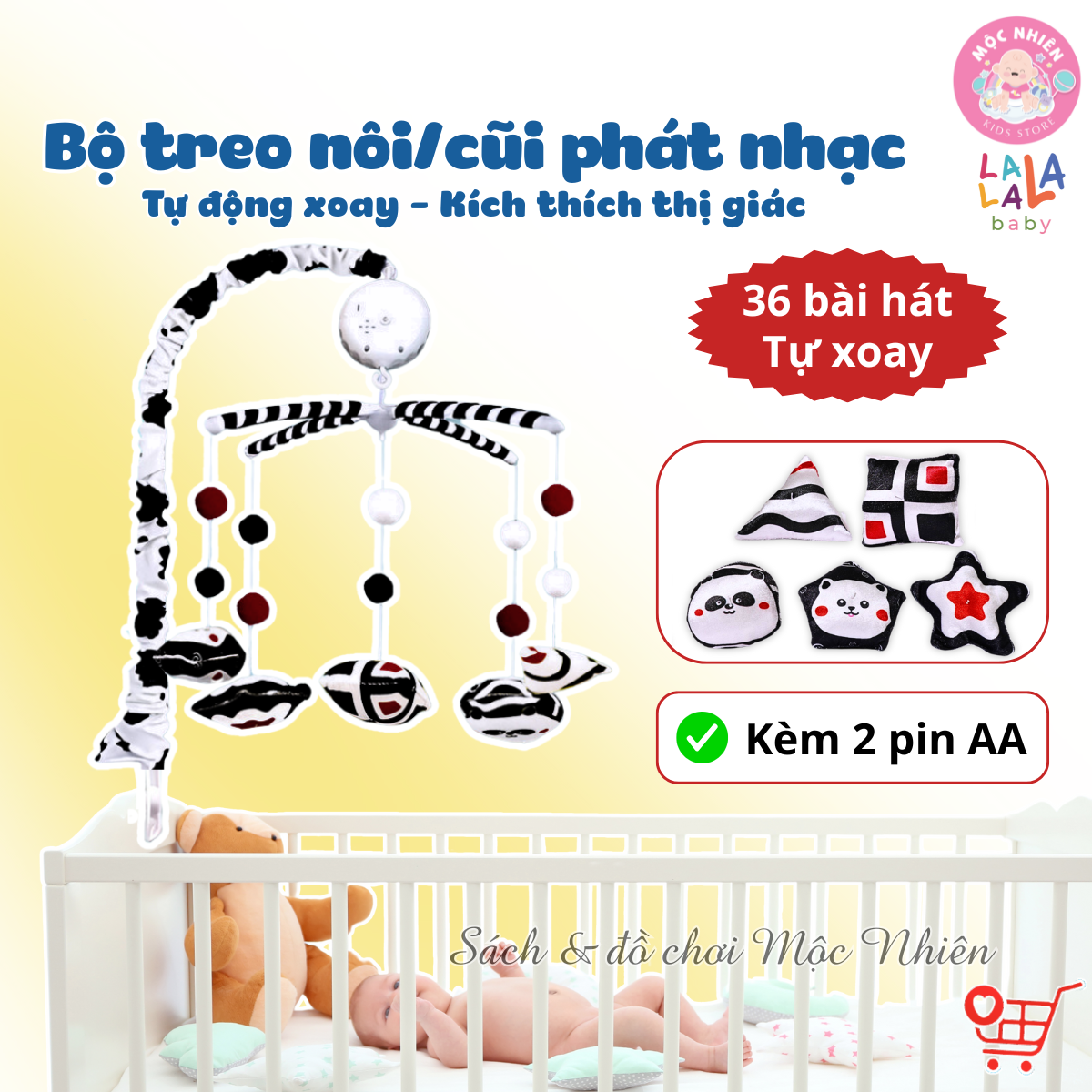 Combo Bộ Đồ chơi Treo Nôi Cũi Tự Động Quay có Phát Nhạc + 2 cục Pin tiểu 2A - Lalala baby