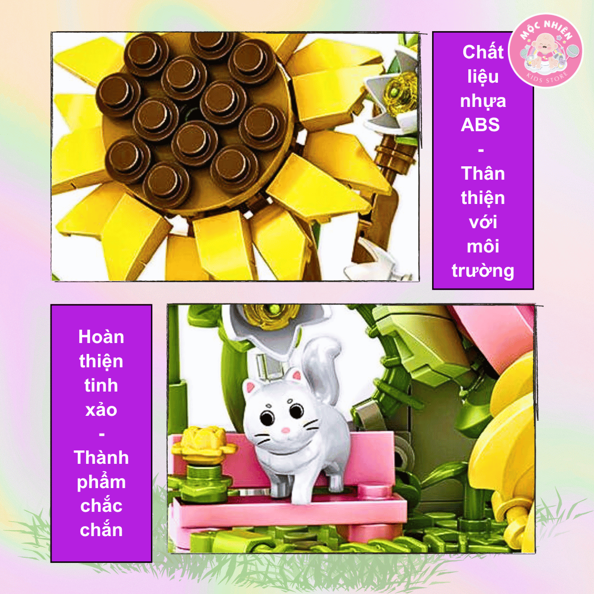 • Bộ lắp ráp 4 trong 1 đầy màu sắc – Đồ chơi lắp ráp Chậu hoa rực rỡ cho phép các bé có thể lắp tới 5 mô hình khác nhau chỉ trong 1 bộ trò chơi. Bộ lắp ráp này bao gồm những bông hoa với màu sắc tươi sáng, cùng những chú bướm đáng yêu, mang đến cho bé trải nghiệm sáng tạo tuyệt vời.