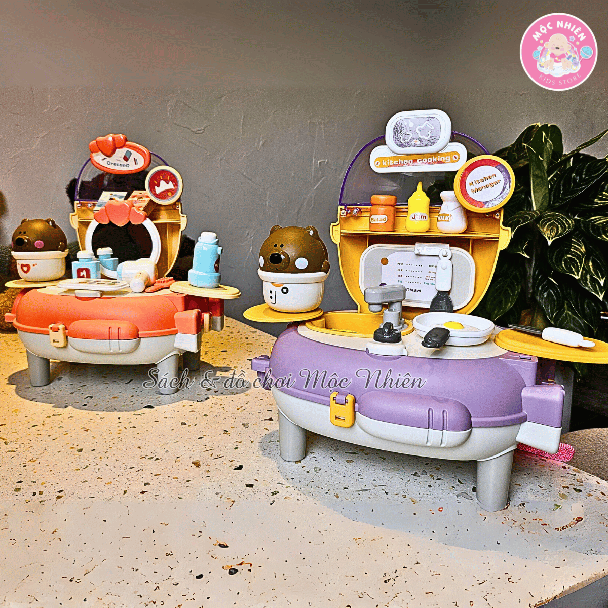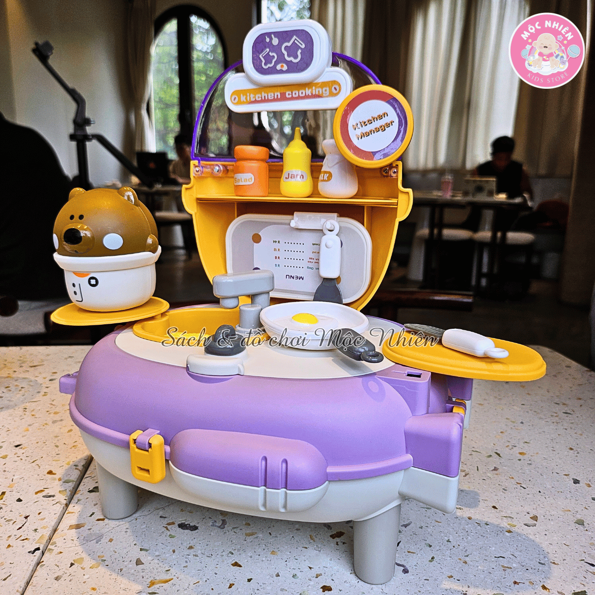 - Bộ đồ chơi với 2 dạng: Dạng balo và Bàn nhà bếp, bé có thể đeo và mang đi khắp nơi