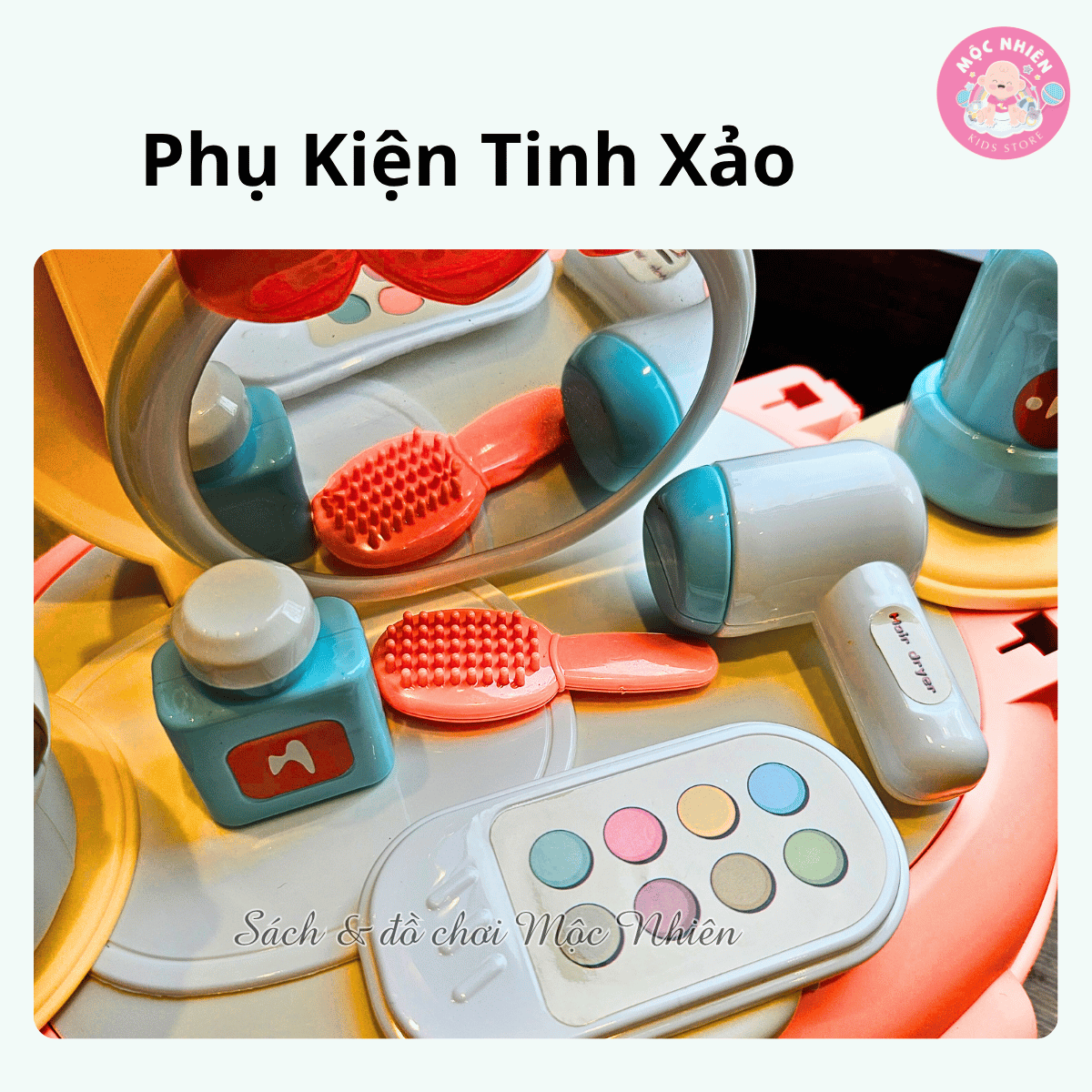 - 21 chi tiết: gương, lược, máy sấy tóc, . . . thiết kế cực xinh yêu cho bé gái