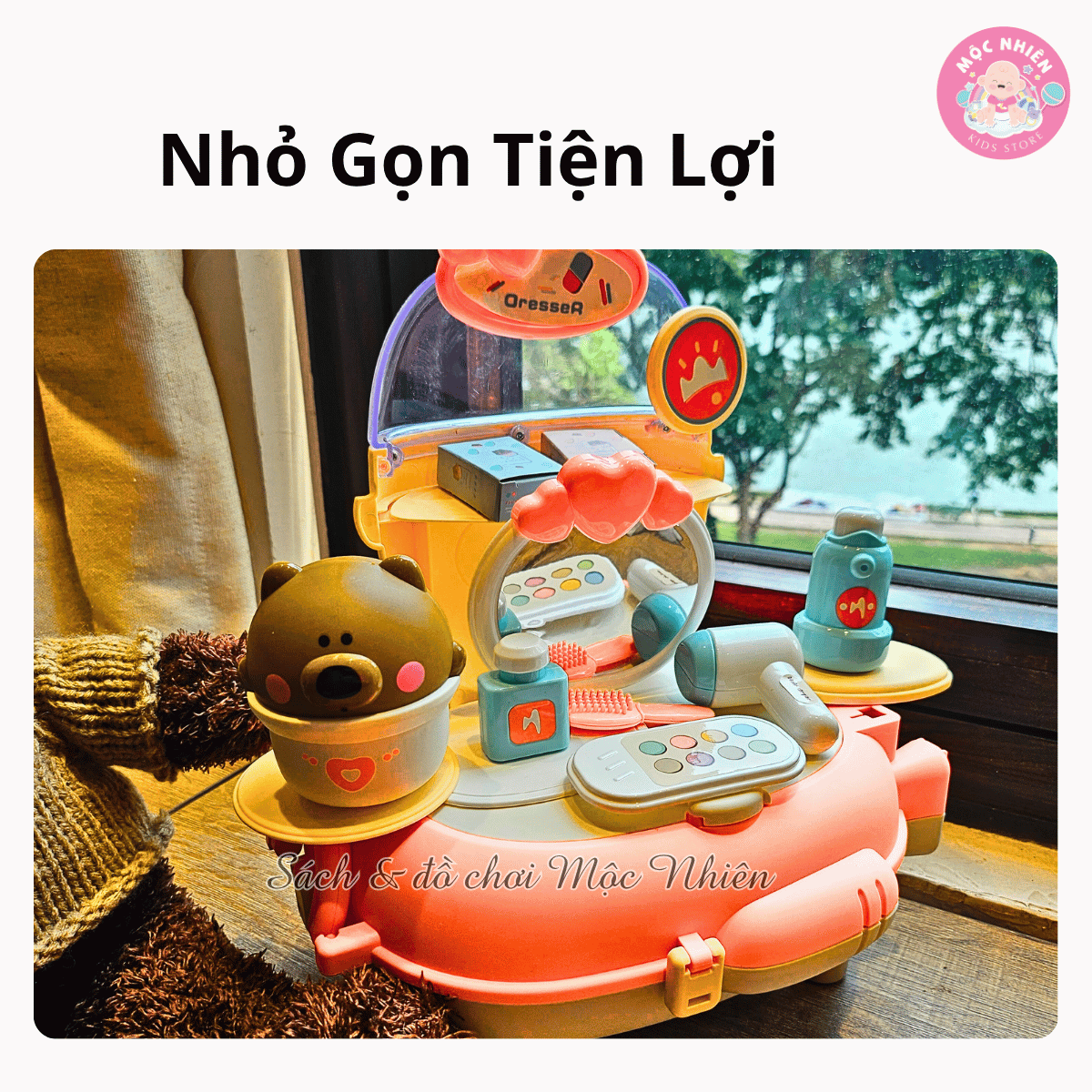 - Bộ đồ chơi với 2 dạng: Dạng balo và Bàn trang điểm, bé có thể đeo và mang đi khắp nơi