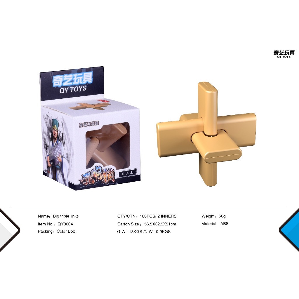 - Nó bao gồm những miếng có hình dạng tương tự, được cài vào nhau. Cài vào khó, tháo ra còn khó hơn. Số lượng miếng ghép trong khóa không giới hạn và có thể rời ra thành từng mảnh riêng biệt. Từ thời Khổng Minh trở lại đây, phát minh