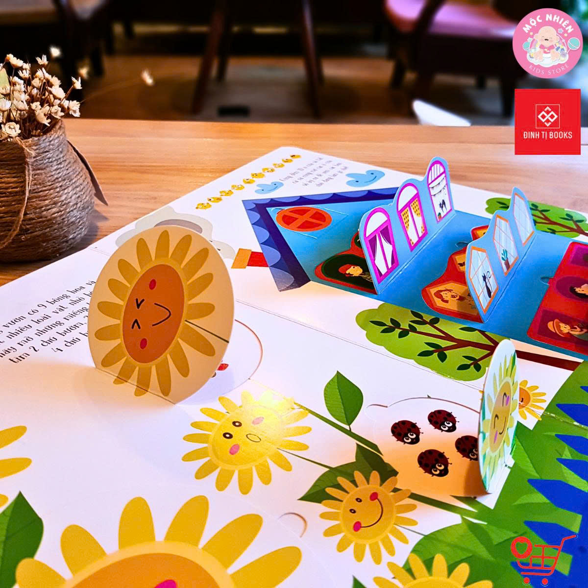 - Sách có thể kết hợp với rất nhiều hoạt động tương tác như đố vui – đoán sự vật phía sau miếng lật; mở rộng ngữ cảnh, liên tưởng thực tế xung quanh hình ảnh trong cuốn sách, …