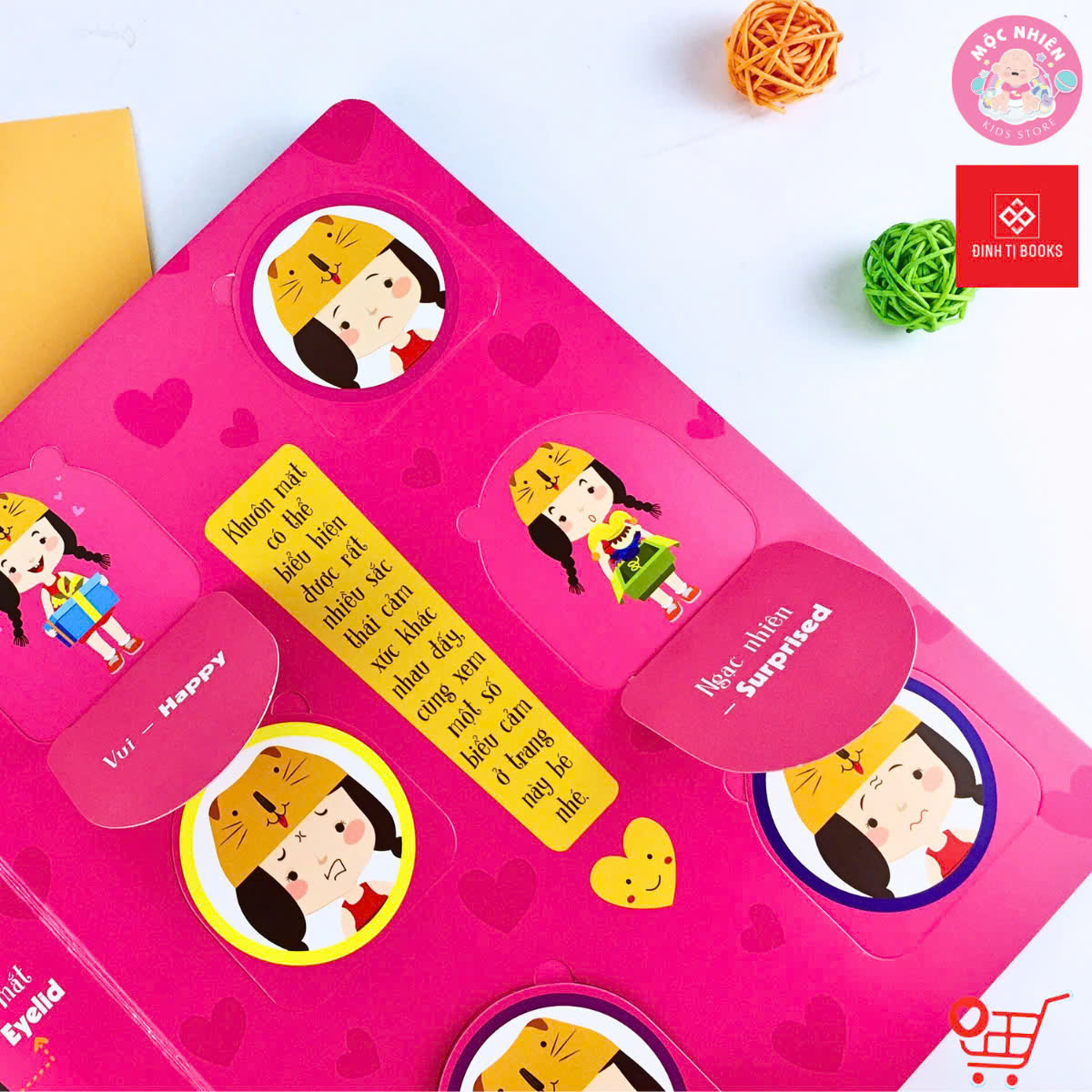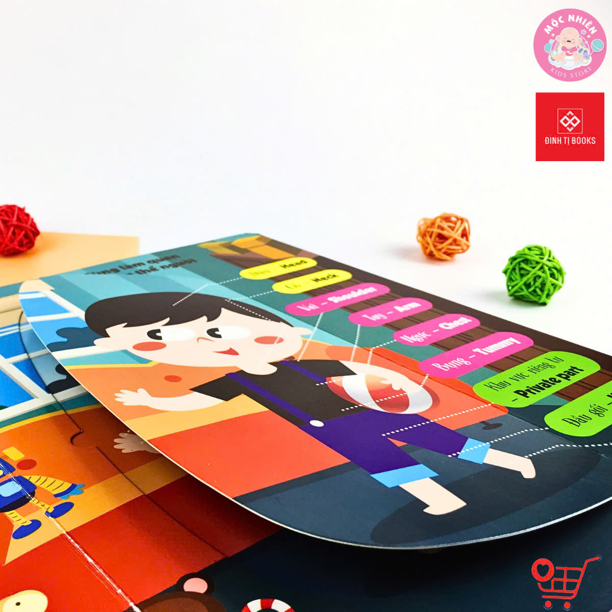 Bố mẹ và bé hãy mở cuốn sách này ra rồi lật những miếng ghép lên để cùng học rất nhiều từ song ngữ Việt – Anh về cơ thể người nhé!