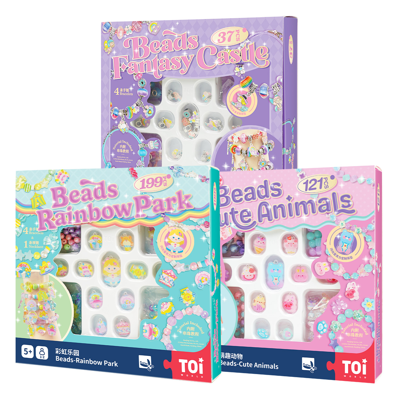 Đồ chơi vòng tay tự làm thủ công DIY trang trí cho các bé gái Beads Charm - TOI 3 chủ đề bé tự xỏ dây luồn hạt